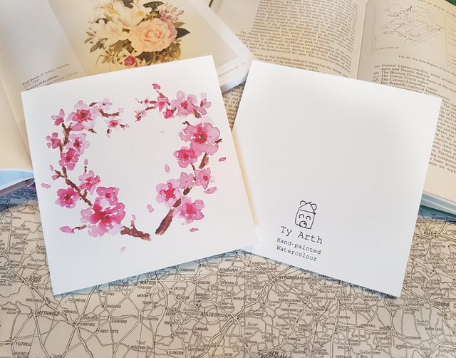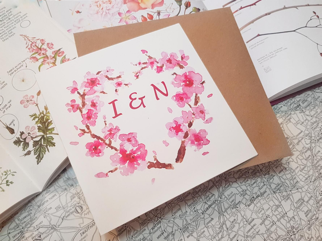 Cherry Blossom Heart initials card (personalisable)
